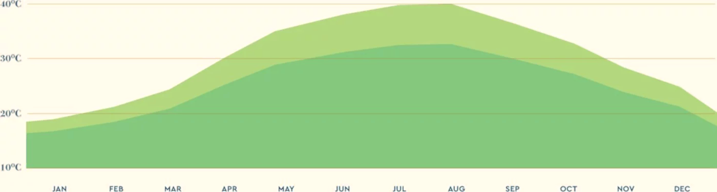 Long, dry summers and mild winters are separated by short autumn and spring seasons. Summer is a time of high temperatures with cloudless skies, tempered by cooling sea breezes in coastal areas. Winters are mild, with some rain and snow in the Troodos Mountains.